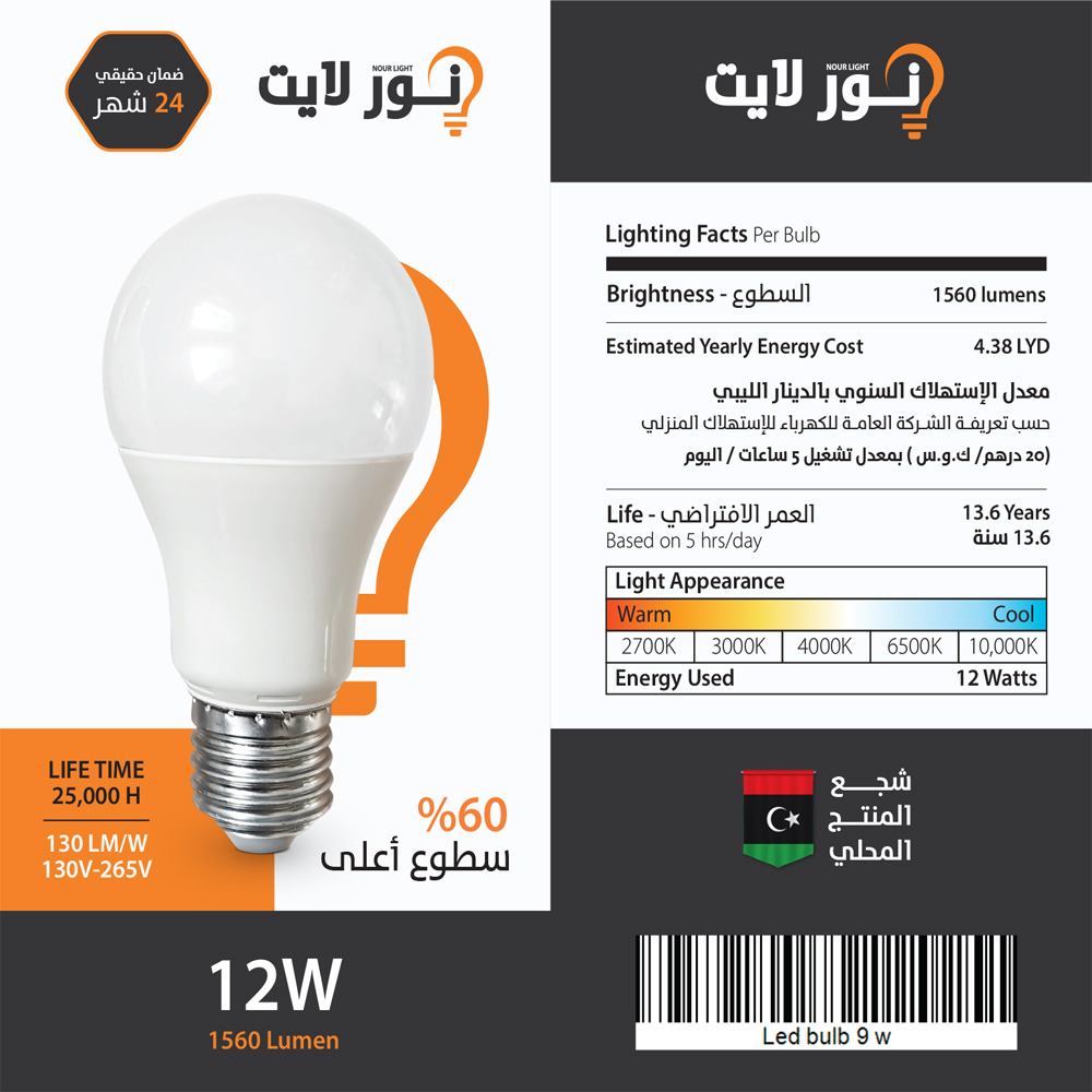 لامبــة ليد نورلايت 12 وات إضاءة صفراء