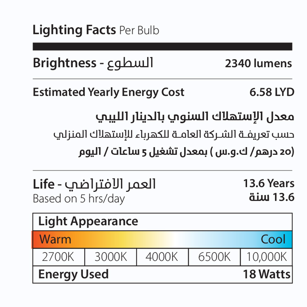 لامبــة ليد نورلايت 18 وات إضاءة صفراء
